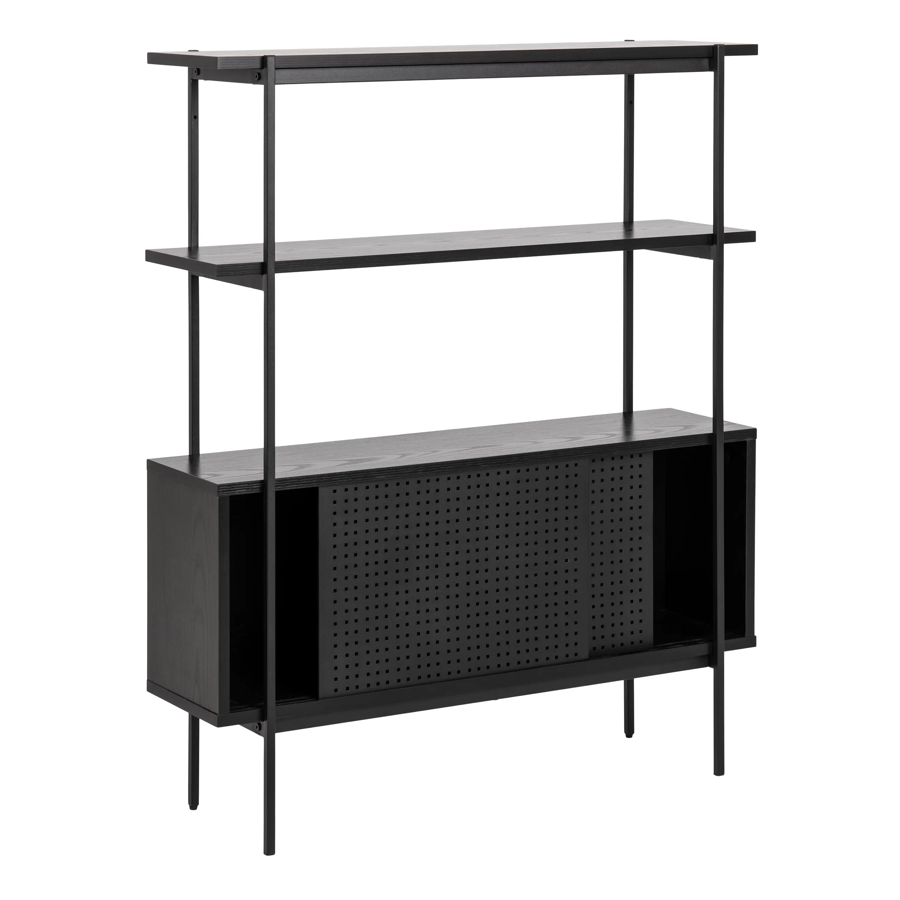 / Angus Small Bookcase with 2 Sliding Doors in Black