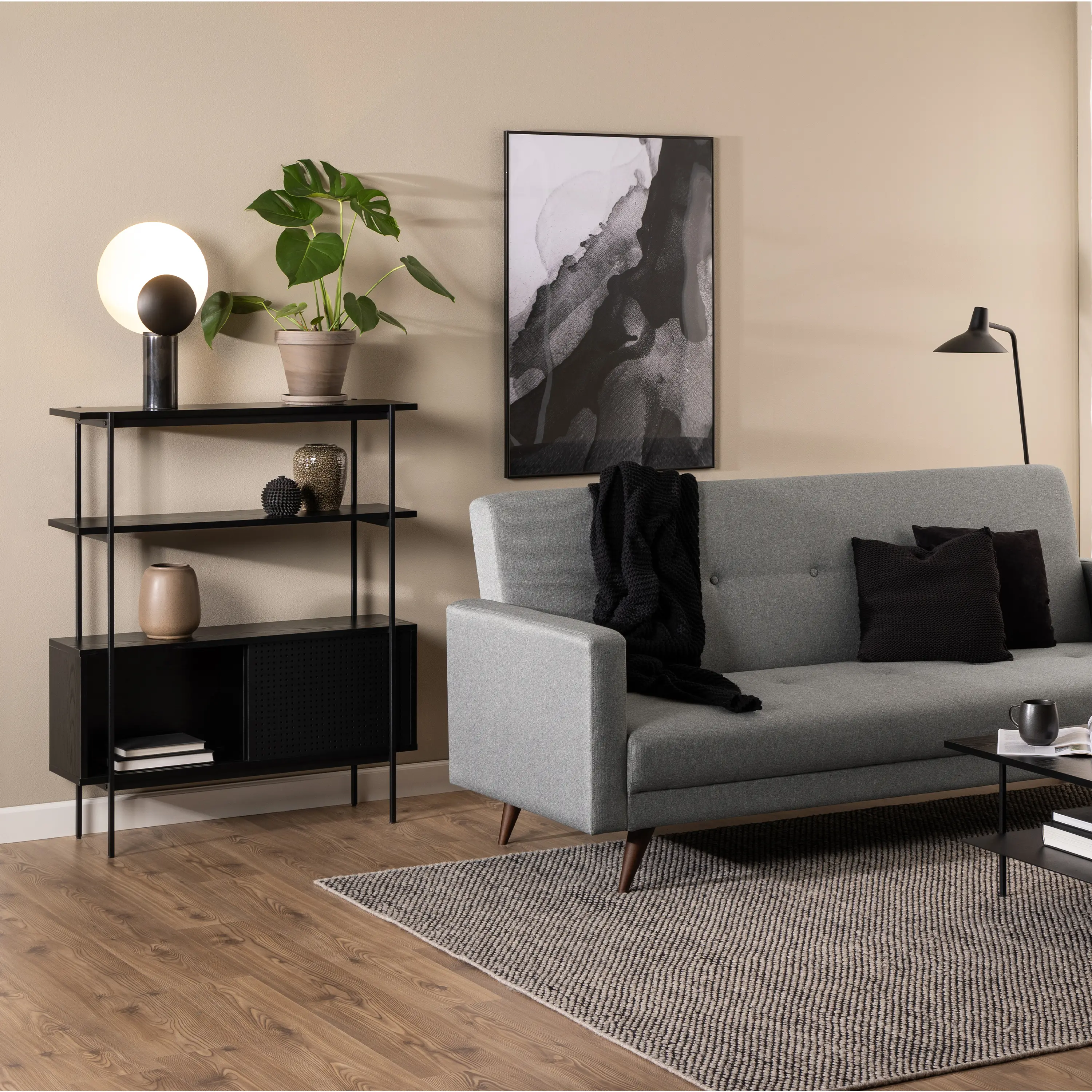 Wall unit with black ash look.