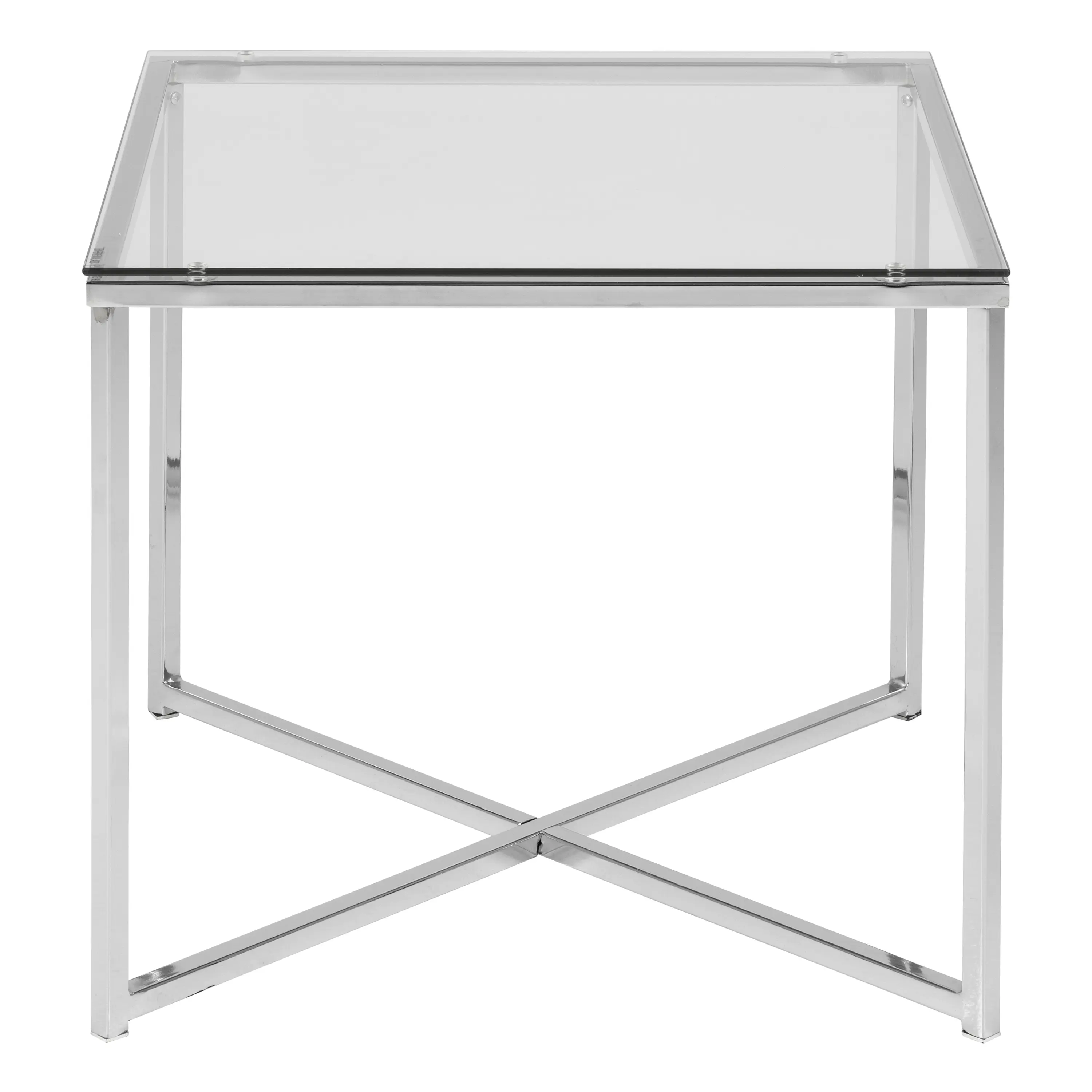 Cross Square Metal Side Table with Glass Top