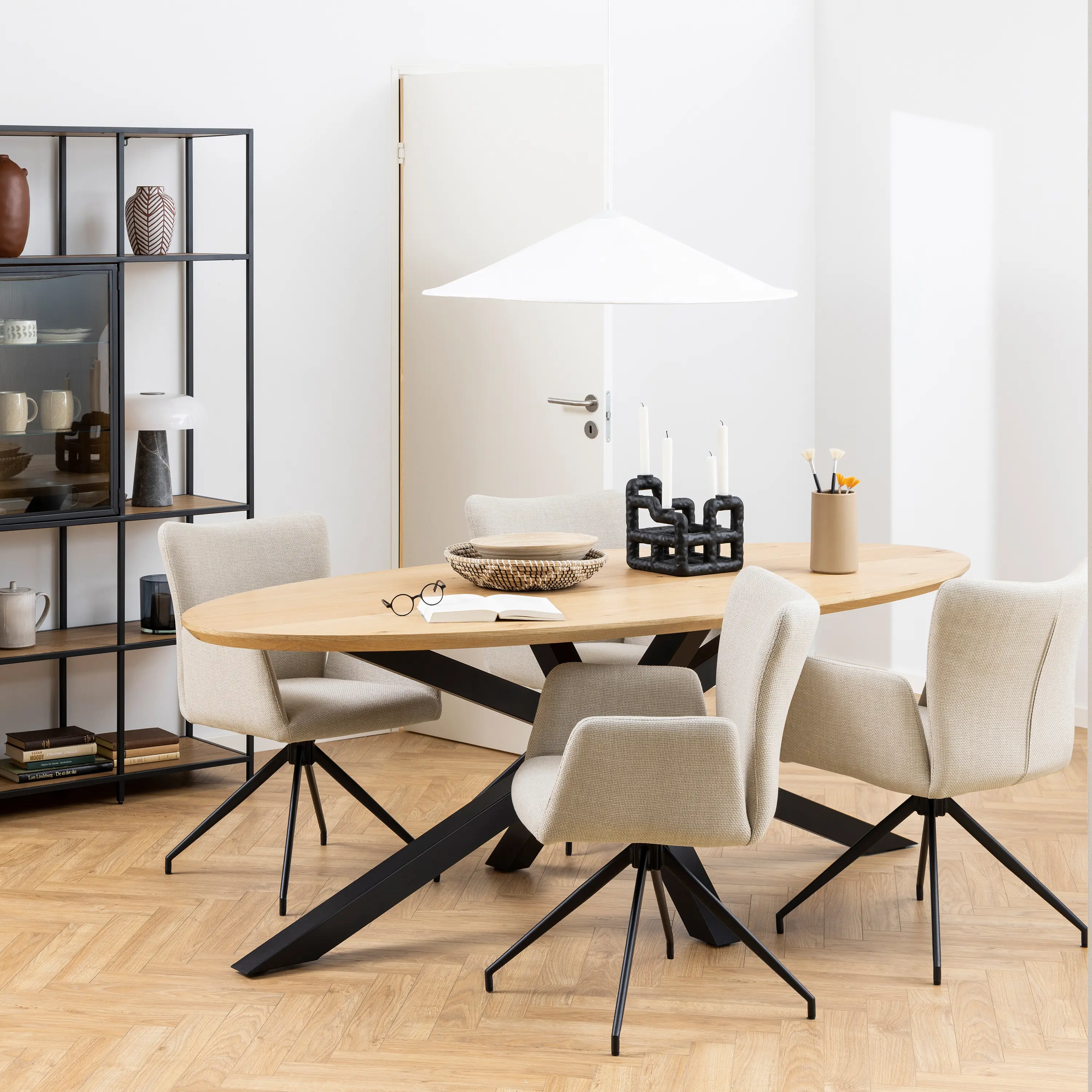 Inviting oval dining table.