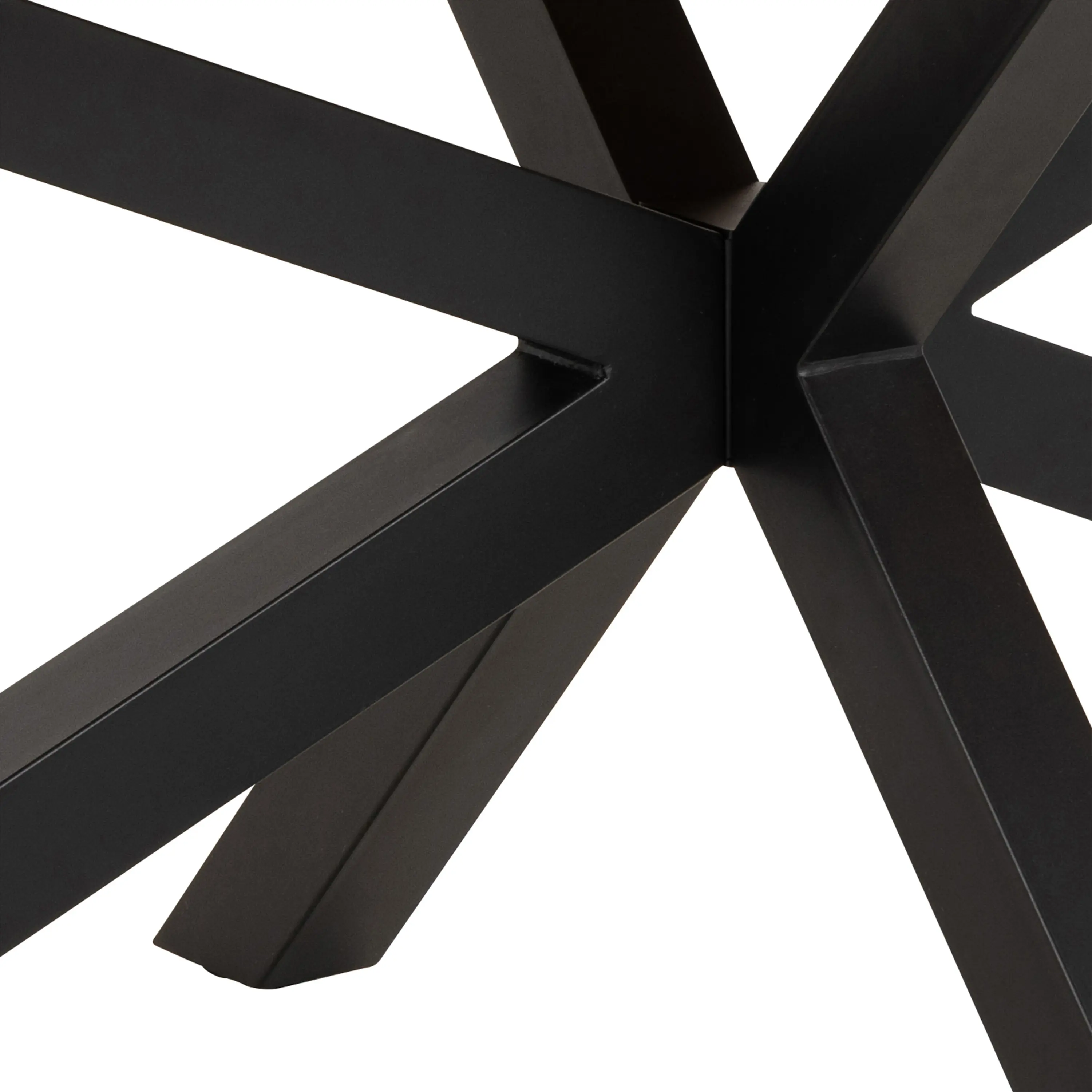 Sculptural cross black rough powder coated metal base.