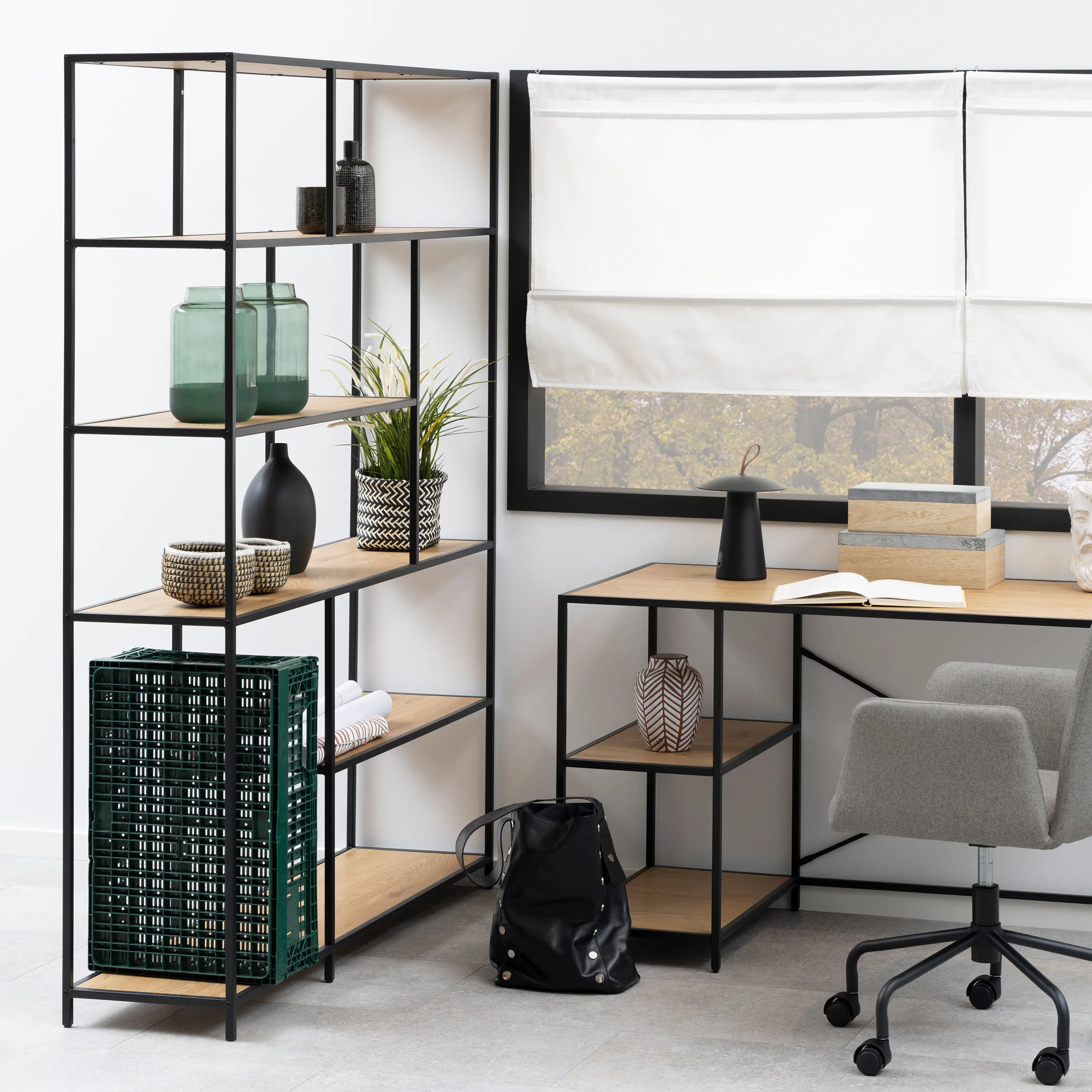 Seaford Bookcase with 5 Shelves in Black and Oak