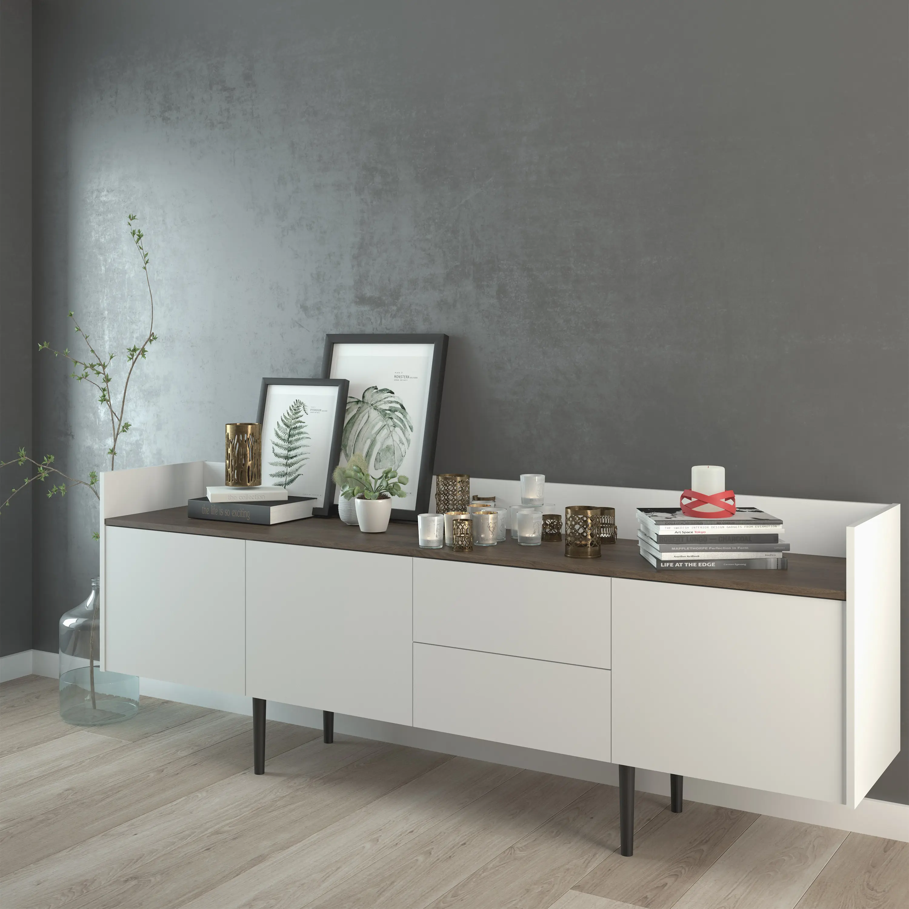 Unit Sideboard 2 Drawers 3 Doors in White and Walnut